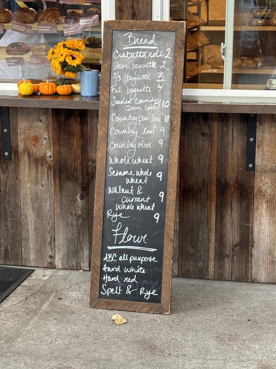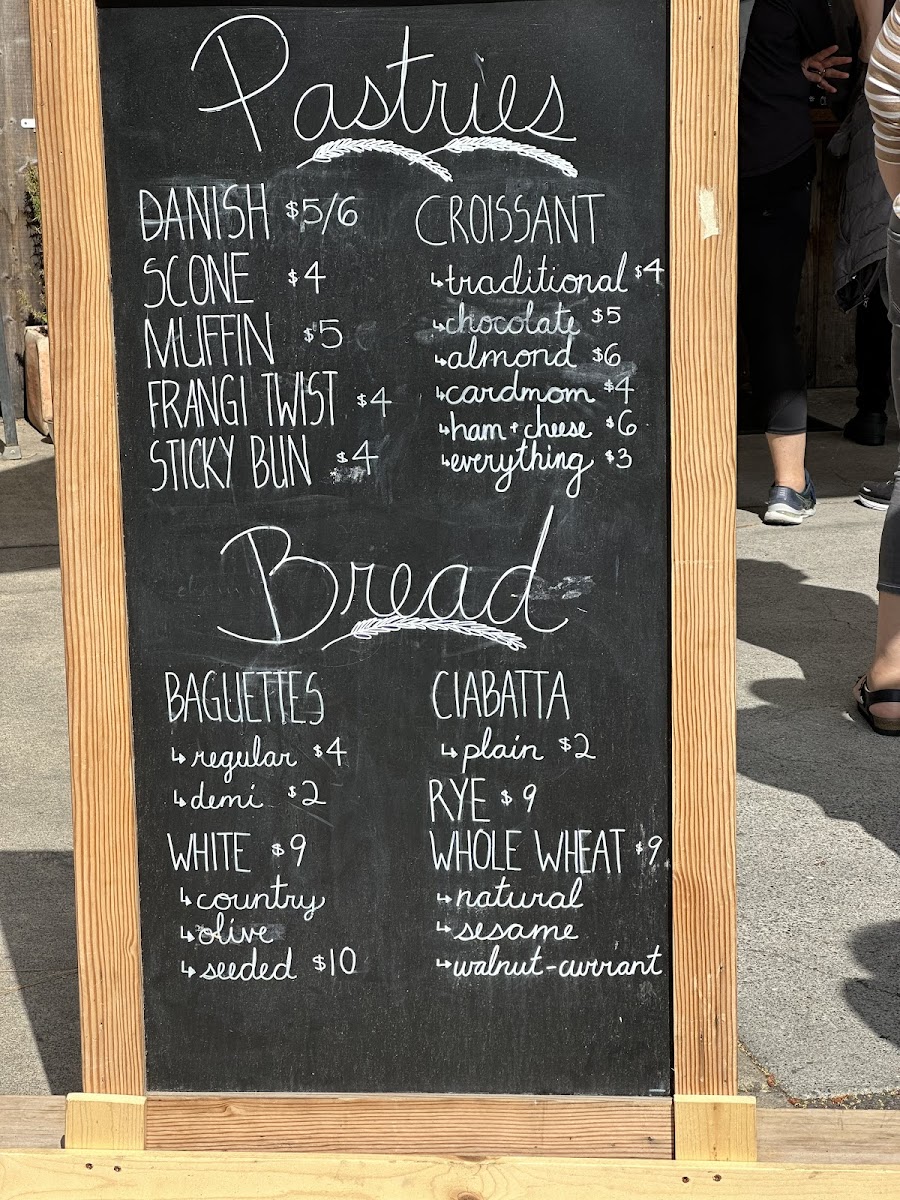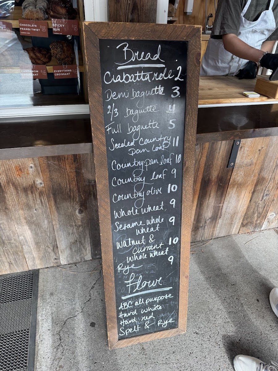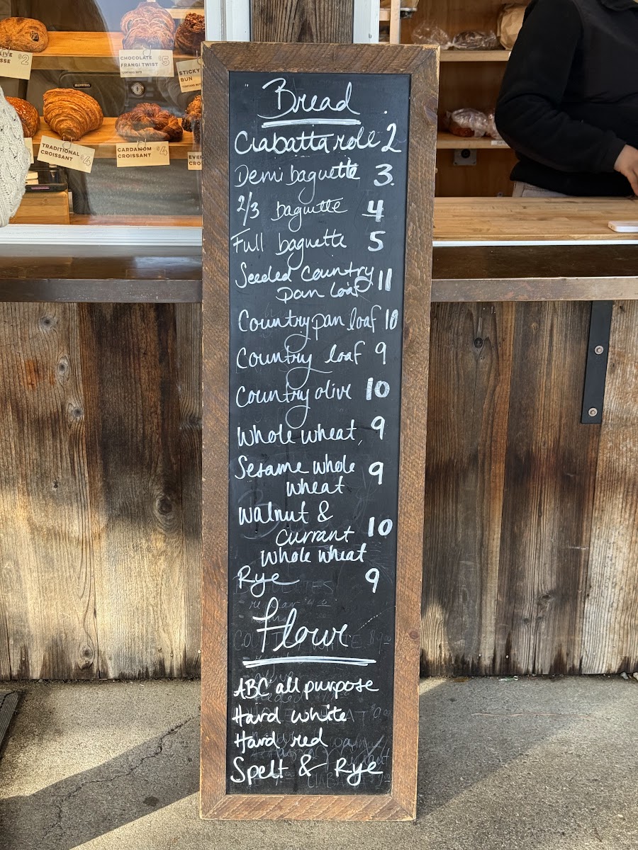 - Bread Selection: Various breads such as sourdough, rye, whole wheat levain, wheat levain baguette, ciabatta rolls and loaves, rosemary olive fougasse, poppy seed ciabatta, and brioche (plain and sesame) are available.